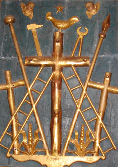 그렇데 된 이유들 중 하나는 중세기의 예술가들이 가톨릭 정신으로 충만해 있었다는 점일 것이다. 그들은 자신이 창작해내는 그림이나 조각, 건축물이 절대적인 무엇을 뜻하거나 상징한다고 믿어 마지않았다. 말하자면, 한 예술가가 작품을 만들어내는 것은 곧 그 자신의 믿음을 드러내는 것이었다. 그런 맥락에서 가톨릭의 구원 역사의 중심에 자리하는 주 그리스도의 수난을 표상하는 것들은 중요한 상징으로 자리매김했다. 십자가 죽음을 앞두고 시작된 주님의 번민, 배신당하심, 붙잡히심, 재판받으심, 사형 선고 받으심, 십자가에 못 박히심, 십자가에서 내려지심, 무덤에 묻히심 등 수고수난(受苦受難)을 나타내는 상징들은 아주 일찍부터 교회의 그림이나 조각에 도입되었고, 믿는 이들은 그것들을 자기 신앙 세계에 받아들였다. 그러한 그리스도 수난의 상징들에는 ‘그리스도의 무기’(Arma Christi)라는 아름다운 명칭이 부여되었다. 그야말로 그것들은 그리스도께서 인류를 구원하시기 위해 겪어야만 하셨던 일련의 수고수난을 나타내는 ‘수난의 도구’들이었고, 다른 한편으로는 그리스도께서 악마와 죽음과 죄악을 물리치기 위하여 사용하신 무기였다. 주님 수난을 상징하는 기구들 프랑스 꼴롱주 라 후즈(Collonges-la-Rouge)에 있는 11세기의 건축물인 성 베드로 성당에는 주님 수난을 상징하는 주요 도구들이 일목요연하게 묘사되어 있는 두 폭의 그림이 있다. 이 그림들은 중세기와 르네상스시기에 나온 문헌들에 실려 있는 삽화들이며 화가들의 회화 작품들에서 흔히 볼 수 있는 주님 수난의 도구들에 대해서 알고 이해할 수 있는 좋은 표본이자 출발점이 될 것이다.
